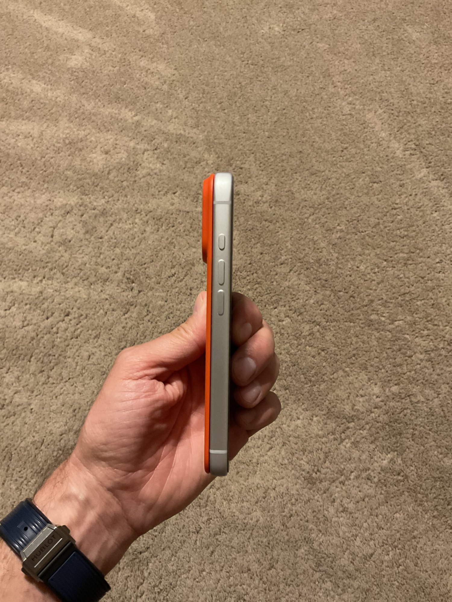 It pairs so well with the silver. I have the same color but 17PM. Hopefully I’ll get my Alpine orange.The Suti Alpine Orange phone back has arrived. Apologies for the pic from my iPad Air 5th Gen.