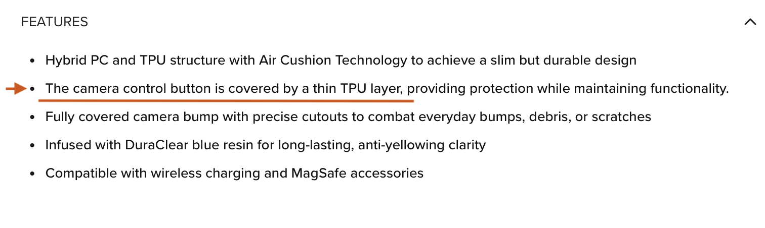 Last year, for the 16 Pro/Pro Max, the Ultra Hybrid had an opening for camera control button. There was no protection for the button and is completely exposed. This year for the 17 Pro/Pro Max, the camera control has a thin TPU cover.