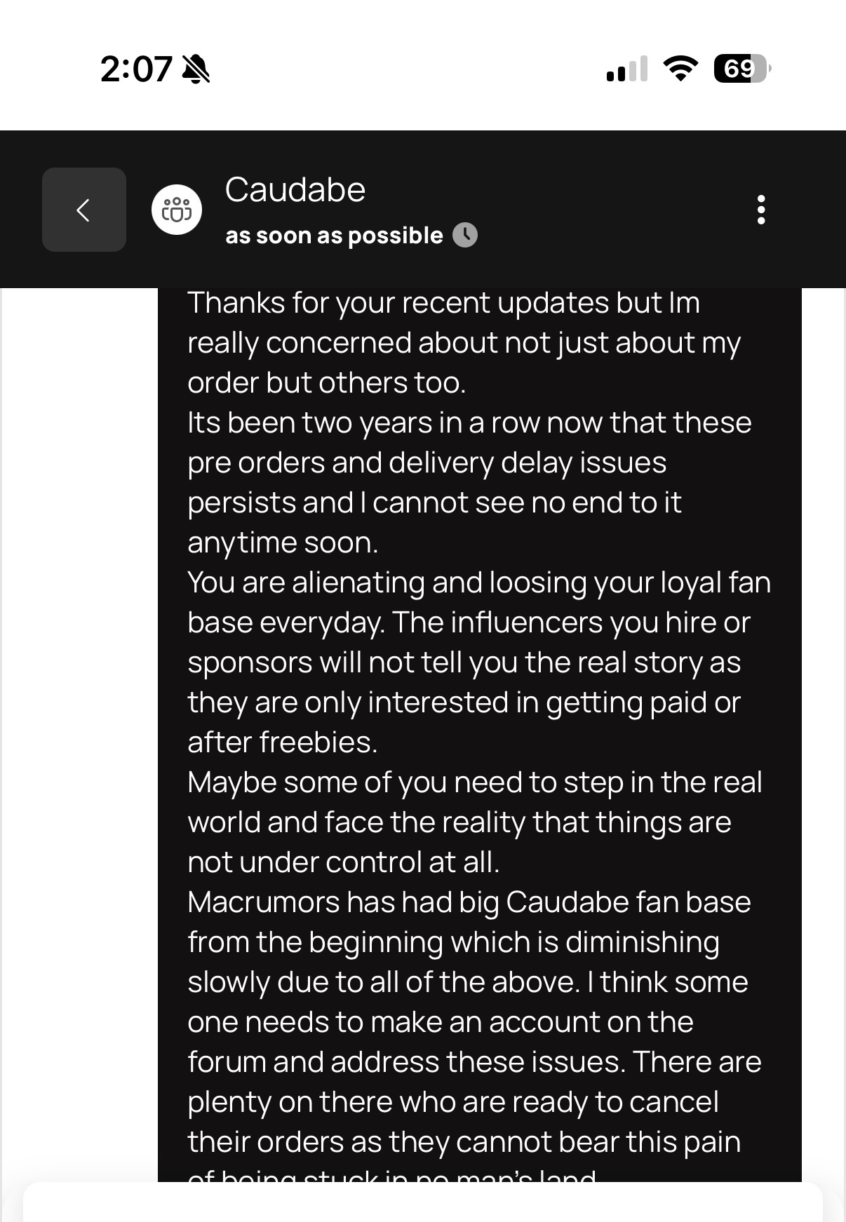 Again, sincere apologies for the delay. We know how excited you are to receive your order, and we don't want to let you down. Over here at Caudabe HQ, it's all hands on deck at the moment. We wouldn't exist without you, and we absolutely don't take that for granted.