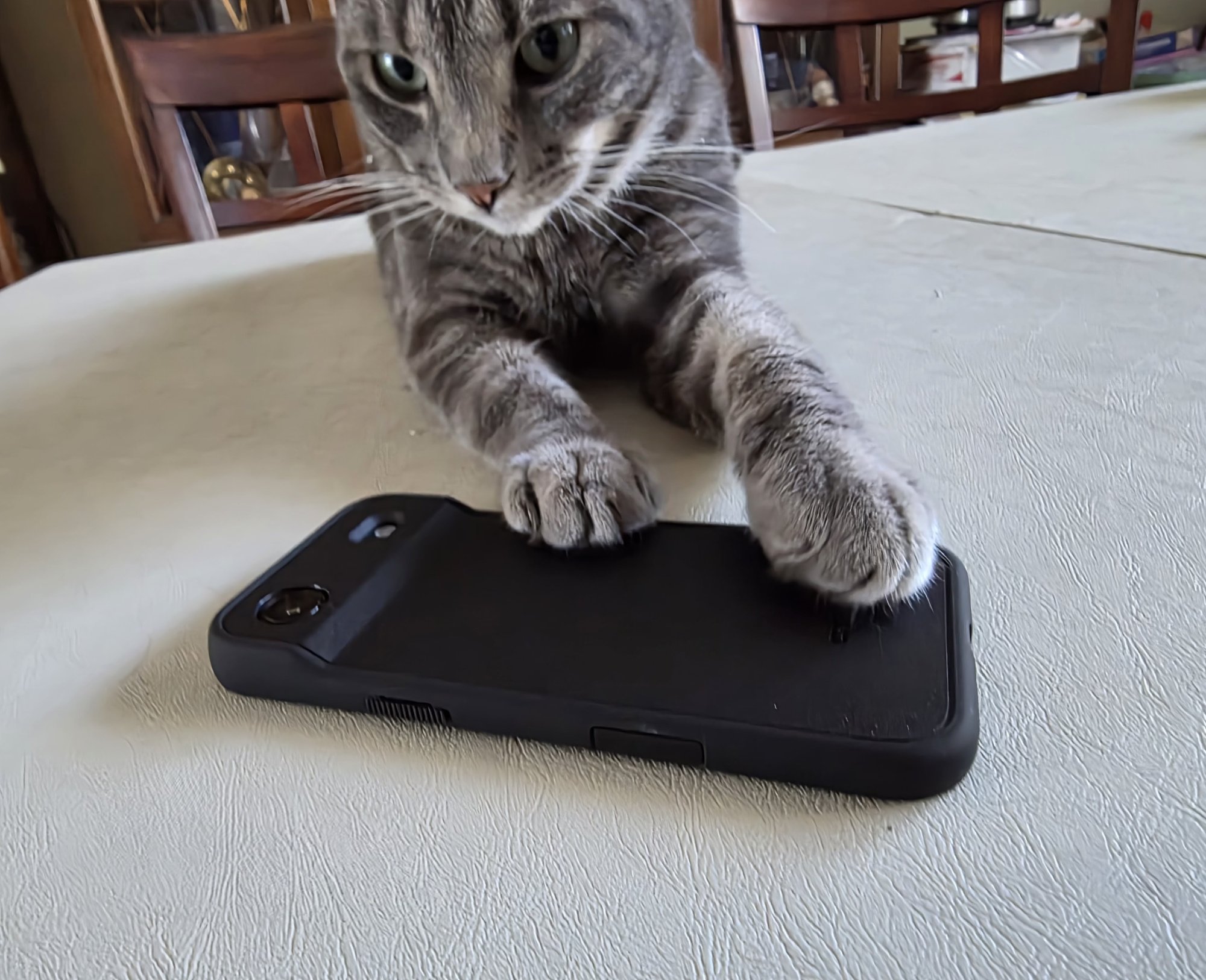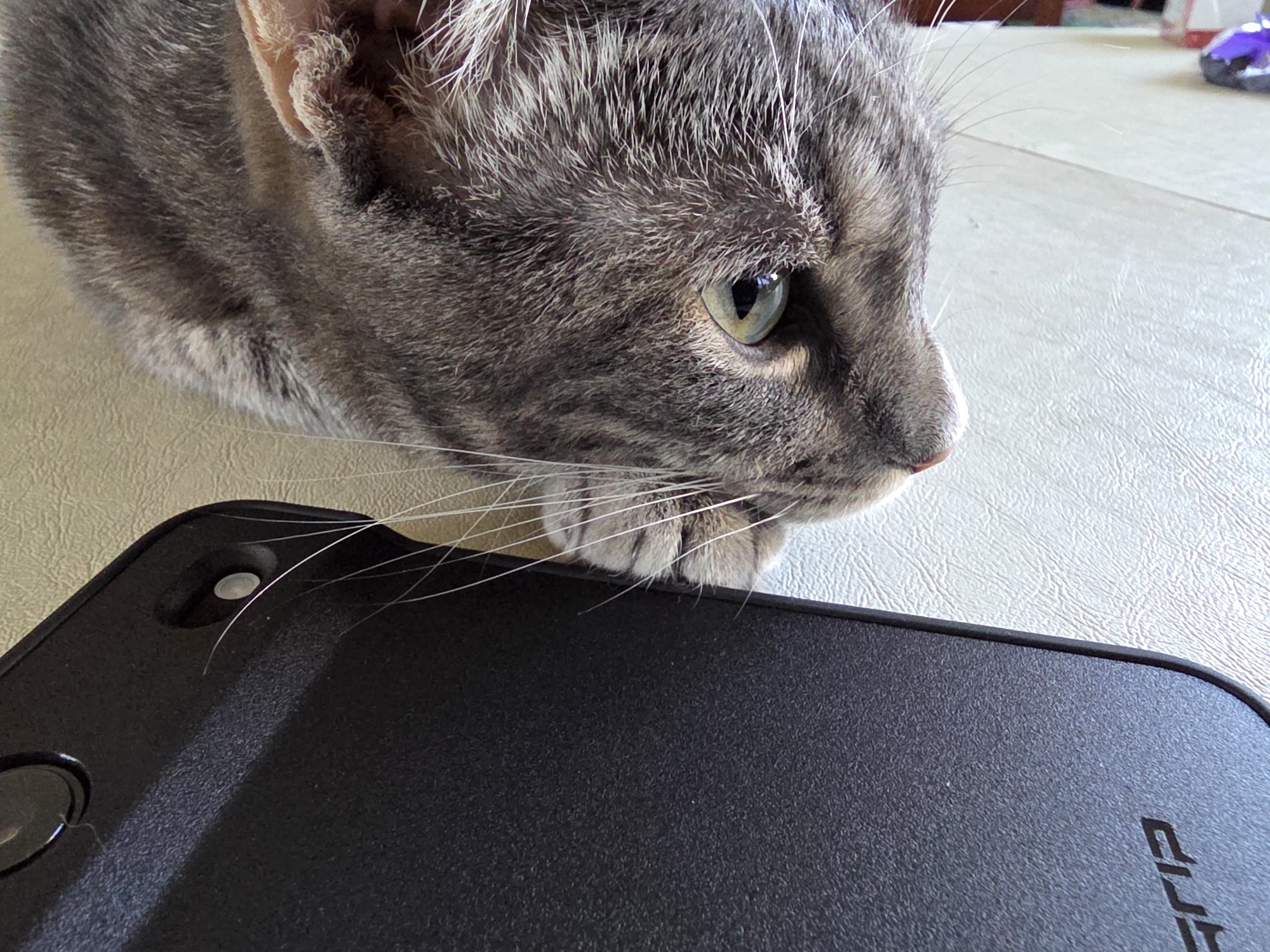 Always love the kitty in the shots, such a handsome fellai got the dbrand grip case for my air. don’t have a scale but it’s on the heavier side. great feel on the sides and the new back, which is textured this year. i didn’t install the skin cause i really like the feel and look of the back. very thin except for the top plateau area. buttons work fine, they are just slit cuts. the cc button works great. if you’ve tried the ghost, it’s not as easily pressed. if you’ve tried apple, its not as firm. for me it’s perfect. not too clicky not too firm. i really like it all in all.