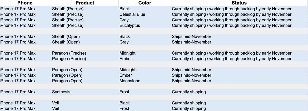 From the Caudabe community on Reddit: Sheath Precise Celestial blue iPhone 17 pro and Sheath Precise black iPhone 16e