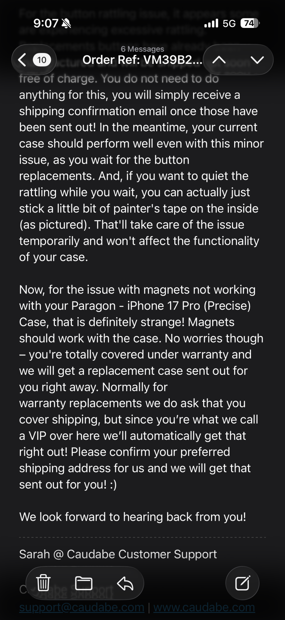Honestly, I wasn't mad that there was a delay, I wasn't mad (just sad and disappointed after the long wait) both Paragon and Sheath cases I received were faulty. But telling me as someone who had Mous, UAG, Spigen, Otterbox, Apple, DBrand, Speck, Nomad, Ringke, Tech21, Rhinoshield and many other brands that having a pointy seam that cuts trough my hand is normal, that it is normal having it just on one side (on volume button side that seam is visible but I can't feel it under my hand as it should be all over), that button rattle is normal and even Apple cases have it (btw my buttons don't rattle so I guess it is not normal) instead of admitting it is a faulty unit and then even telling me to use nail file to fix it. Wow. It's really becoming hard to have understanding for their excuses and to keep supporting the company.