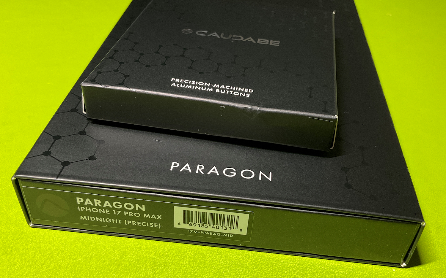 Looks great! The Paragon for my 16PM was the only Caudabe case I liked much over the past couple of years.Out of the blue in todays mail is a package from Caudabe with a 17PM Midnight Paragon and one set of ember buttons. No shipment notification, not showing in my orders or anywhere else. Still no ember Paragon or the other button sets I ordered back on 9/15 or replacement Sheath buttons that were suppose to be shipped.