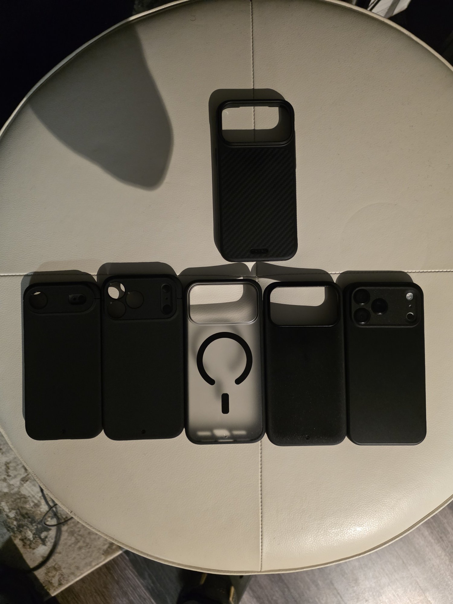 Most have the Caudabe logo, so a couple Sheaths (Air & Pro), whatever their clear case is called, Synthesis and a Paragon? Not sure on the far right since no logo is visible. The Paragon logo isn’t on the back, it’s on top so may be that?What are they?