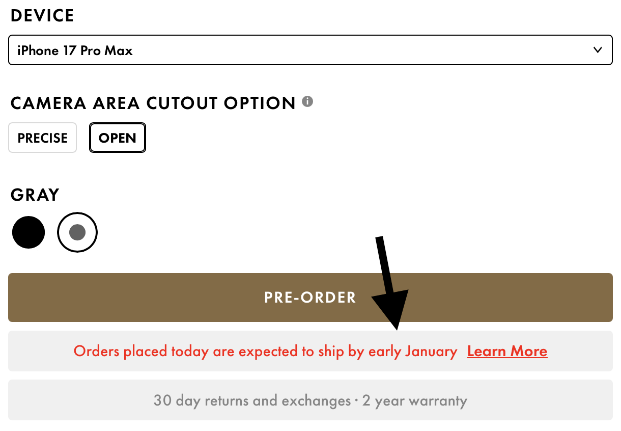 I ordered open Paragon Moonstone for 17 pro late last week. It was supposed to ship late November (this week). Now updated to early December. I messaged them on Instagram. Their reply last night: