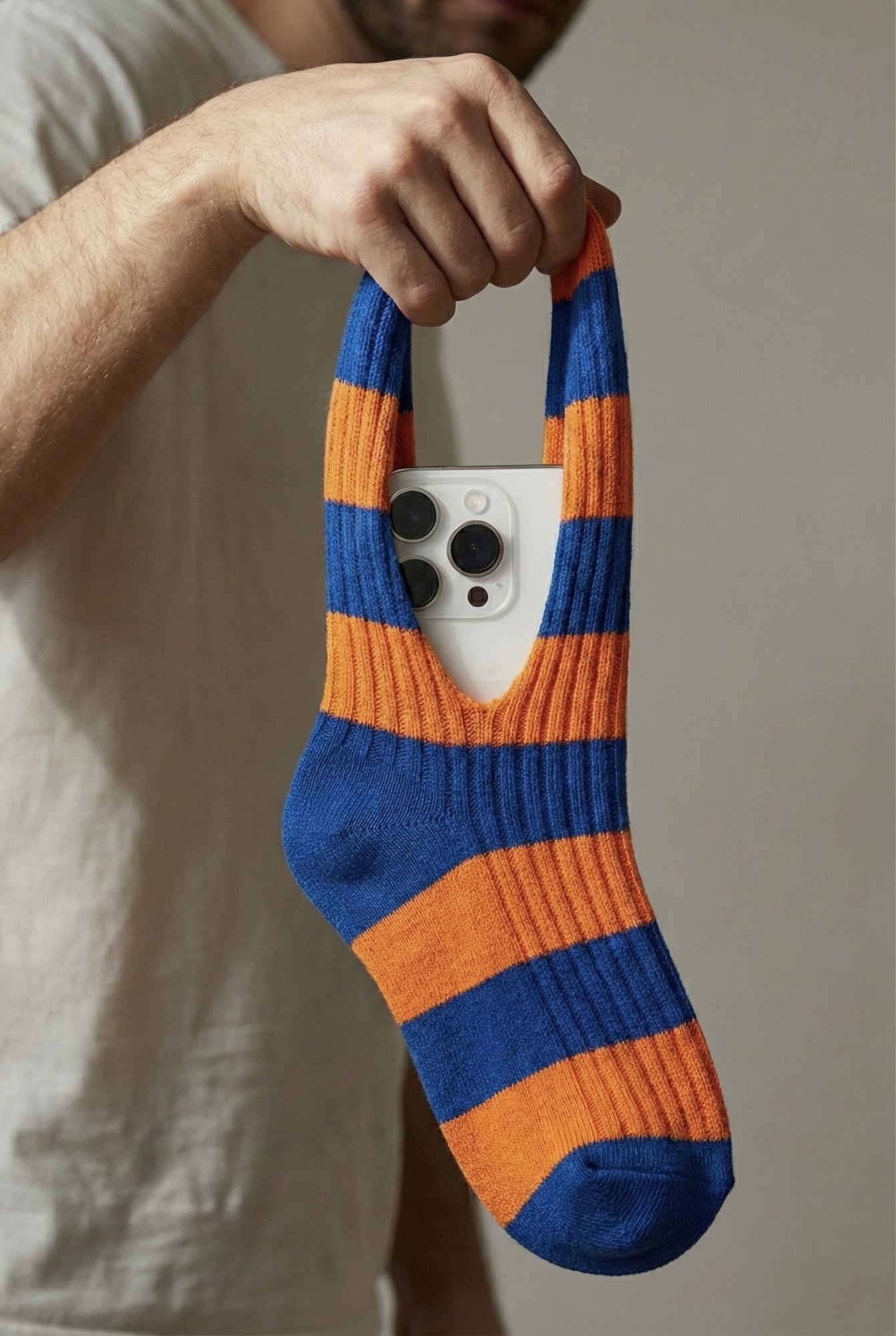 Yeah, so talented: “Hey Nano Banana, put an iPhone in a sock.” 😂Oh, outstanding. I can tell you are a talented visual artist. The vivid stripes on the tube sock really bring out the je ne sais quoi of the device. If it's not too much trouble, would you replace the phone with an iPhone Air and zoom out a bit so we can see it being worn by someone? Perhaps someone with a magnetic personality such as Sydney Sweeney or Gal Gadot. For science.
