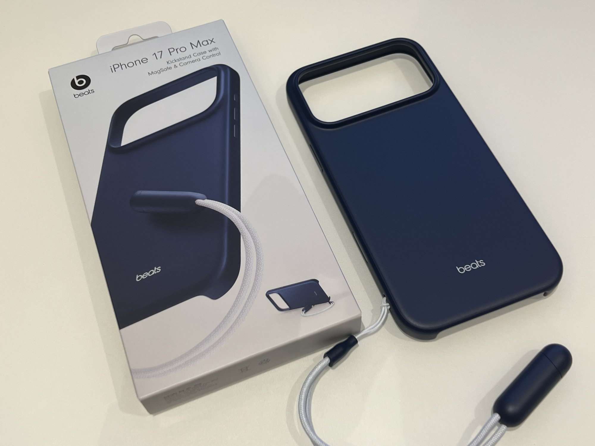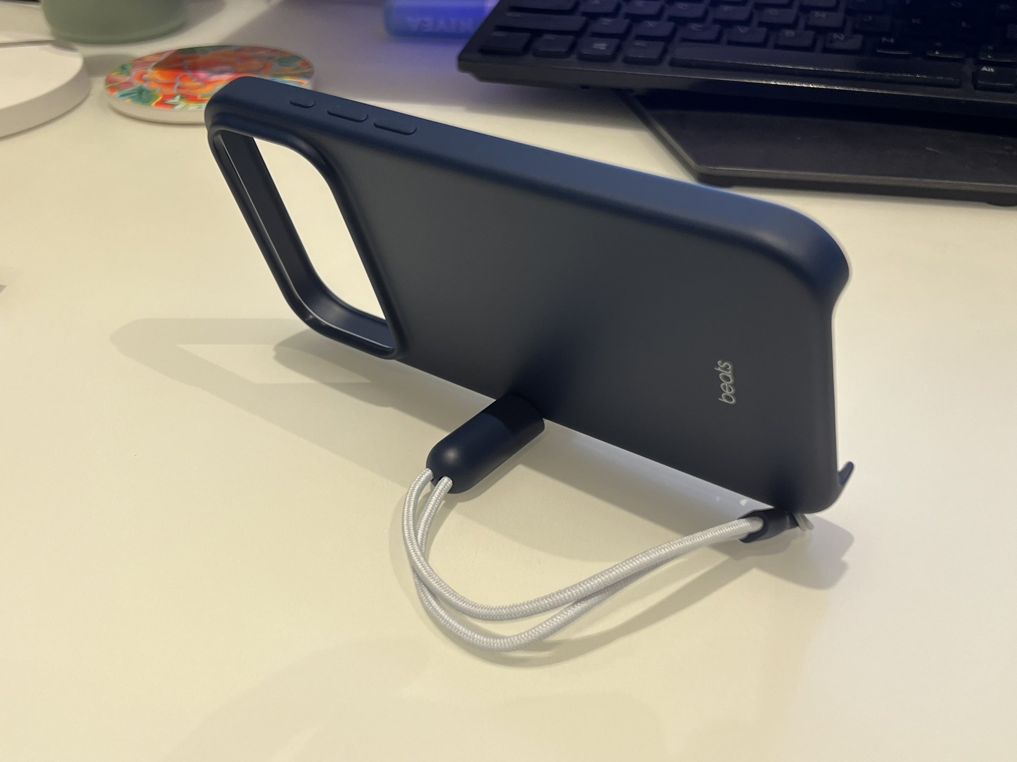 Beats case with kick stand. Interesting cord and magnetic part to stand you phone in landscape mode. Not sure how I feel about it yet. The cord might get annoying. Case material is better as it’s matte and not shiny like last year.