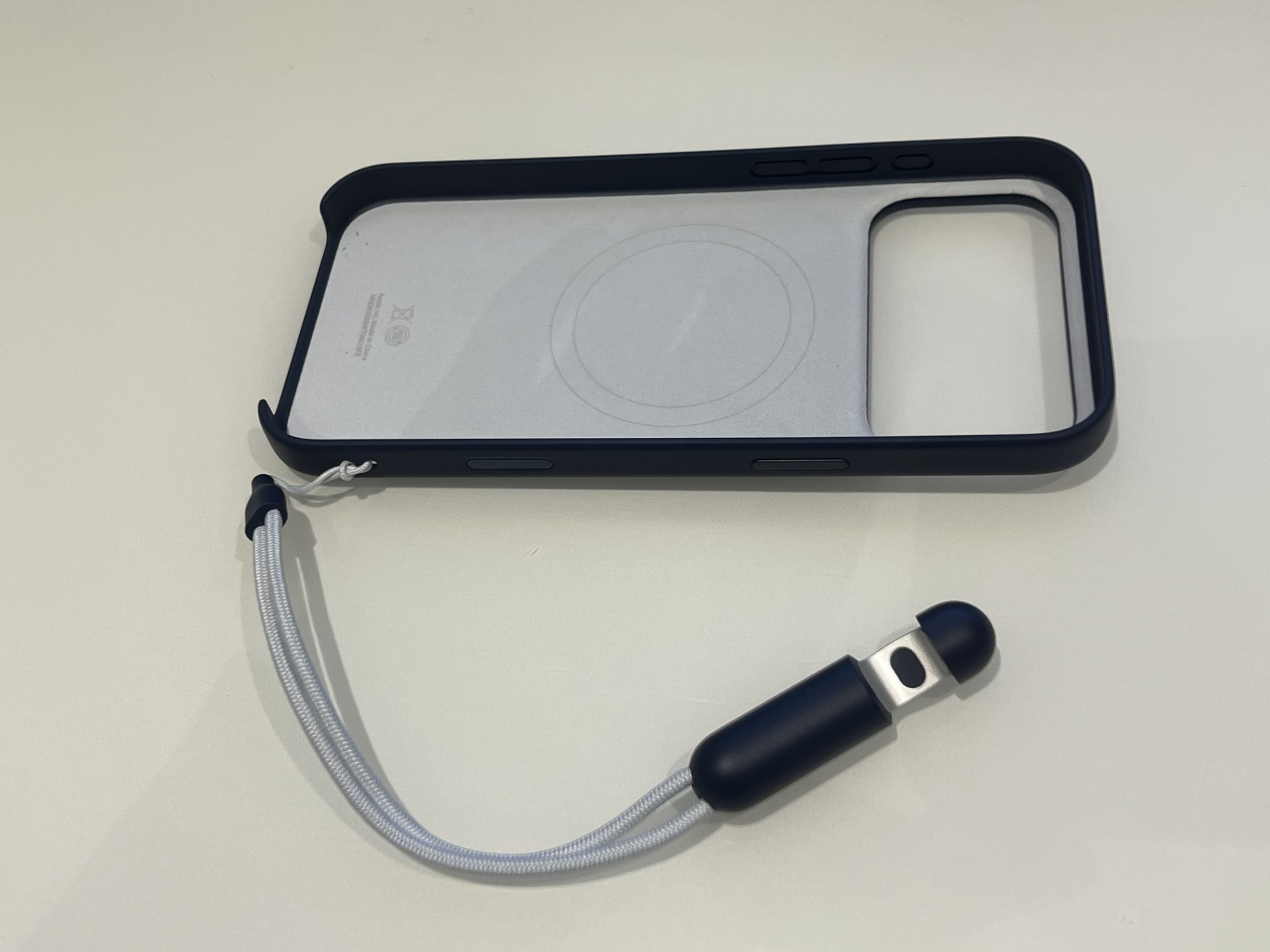 It’s a lanyard with a small attachment and a magnet inside. There’s only one point on the side of the phone that it clicks onto