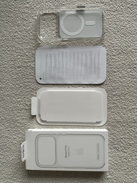 At this stage, it wouldn't surprise me if it's a legitmite product and the packaging design was in the hands of an intern.This seems… off. That “iPhone 17 Pro / Clear case” text seems to be set not in SF Pro, but in Myriad Pro, Apple’s old corporate font. I’m putting my money on this being a very elaborate, but at the same time sloppy fake.