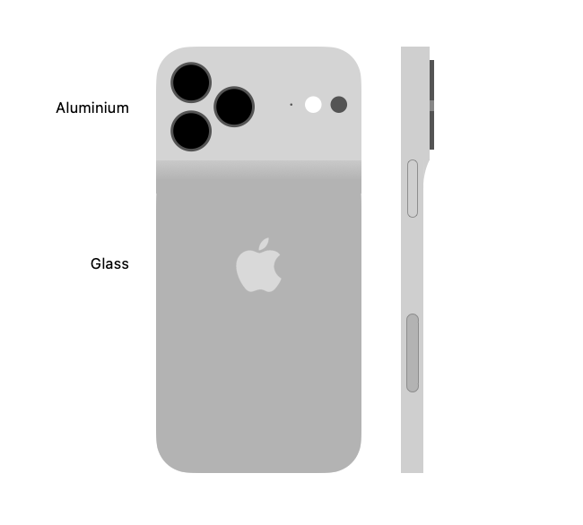 What if it's something like this with a raised aluminium top half which runs the width of the device. The triangular camera arrangement however is maintained except they are now flush with the device, and it also stops it wobbling on a table. The lower part of the device remains glass (needed for MagSafe and antenna). Weight distribution of the thicker top half is maintained by using aluminium on the raised half and glass on the thinner, lower part of the device. Could this be it?