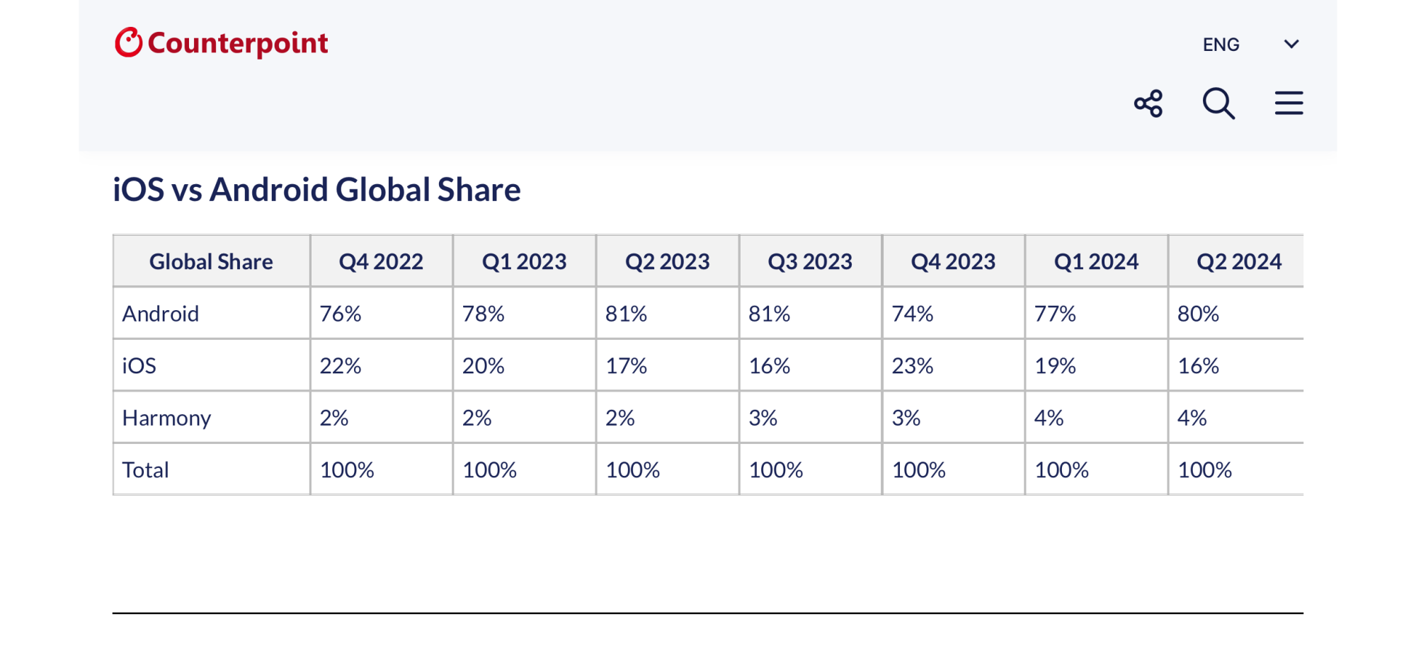 We will see.I predict that in three years from now Harmony OS will overtake iOS in percentage.