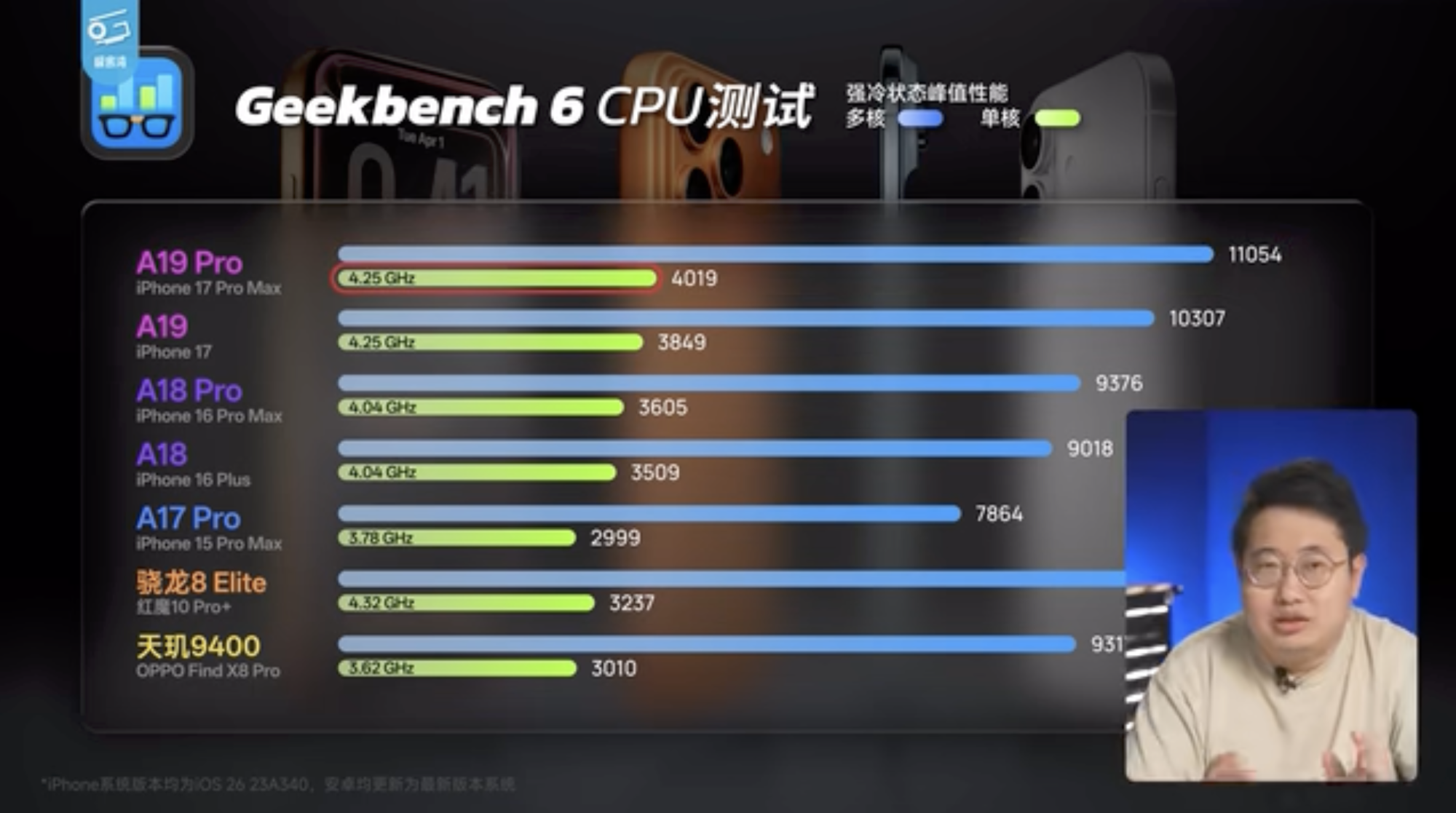 我们测到了iPhone 17、iPhone 17 Pro和iPhone 17 Pro Max!这次的iPhone相当惊喜,不仅A19系列芯片进步明显,Pro的散热也有大幅改进,续航更是补足了短板!到底有多强?一起来看吧!, 视频播放量 4165147、弹幕量 18620、点赞数 131185、投硬币枚数 62830、收藏人数 29044、转发人数 31449, 视频作者 极客湾Geekerwan, 作者简介 爱折腾、超硬核的科技数码频道!商务合作请联系:bd@geekerwan.com,相关视频:外观变了,值得买吗?iPhone 17 Pro&Air评测,现场把玩iPhone...