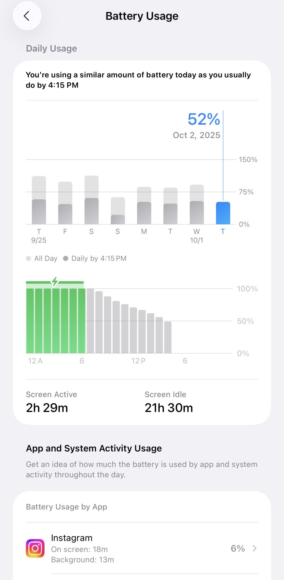 I have a sense that the battery is not lasting as long as my 14 PM did but that might just be because of iOS 26. TBH, my phone largely sits around on weekdays because I'm mostly working. On times when my 14 PM wouldn't see much use, I'd get four days from 100 percent to when it needed to be charged and I usually plugged it into the charger when it got down to around 35%. I updated to 26 on the day it was released and that dropped to a bit more than three days.