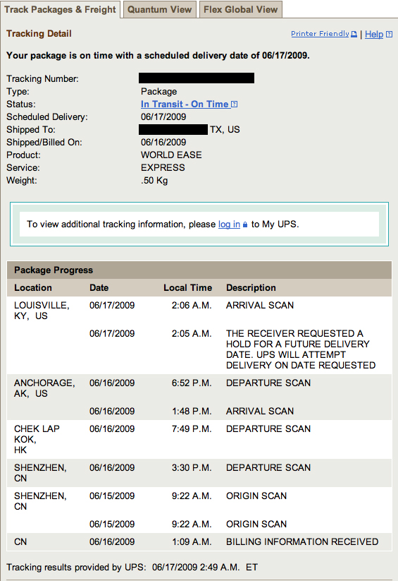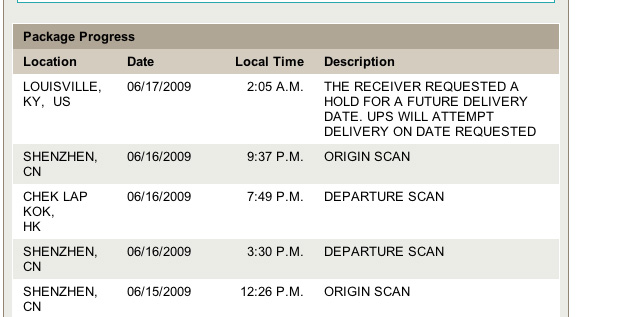 Your package is on time with a scheduled delivery date of 06/17/2009.
