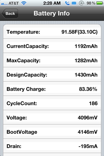 I've had my iPhone 4s since January and I just recently jail broke it. I was curious about my battery health so I installed an app from cydia called BatteryDetective and this is what it gave me. For a brand new phone I don't think this is normal, what do you think?