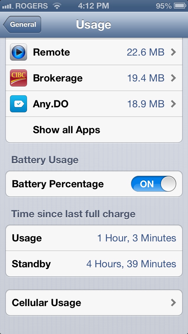 My iPhone 5 battery seems to be draining abnormally fast. I started using it around 10:45 this morning and it is now 2:15 and at 58%. I've been browsing, using apps, email, and no phone calls. It seems to be dropping at about a percent every couple of minutes. To me this is an issue. It was around 65% when it came out of the box and I didn't let it run completely down before charging fully. I charged it overnight and it was at 100% this morning when I started using it. Am I being overly paranoid and should I just let it run down and re charge over night? Or do you think there's a real issue. Just typing this it dropped from 59% to 56%.