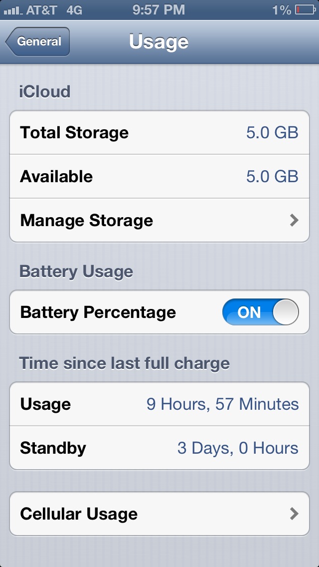 Screenbrightness at 15% now. On 3G this phone drains fast on hard use.I don't know how you guys are getting 8 hours battery life. Quite frankly I'm disappointed with my IP5's battery life. I used the phone very lightly and I use LTE pretty heavily and I got about 4.5-5 hours of battery life today. Granted my phone is new and I'll need to let the battery settle in, but I'm not expecting a dramatic improvement. Screen brightness is about 25%.