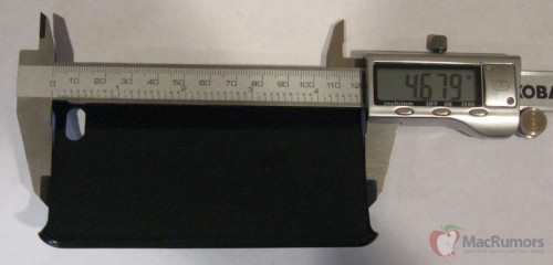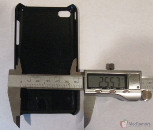 Assuming a comparable margin on the iPhone 5, the device's display would be approximately 2.24" wide, making the display approximately 4" on the diagonal. It seems unlikely that Apple would make the margins of the iPhone 5 screen larger than on the iPhone 4, so if this does represent the final case design, the iPhone 5's screen would have to be at least 4". Of course, this contradicts a recent report from DigiTimes claiming that the iPhone 5's screen would be between 3.5"-3.7".