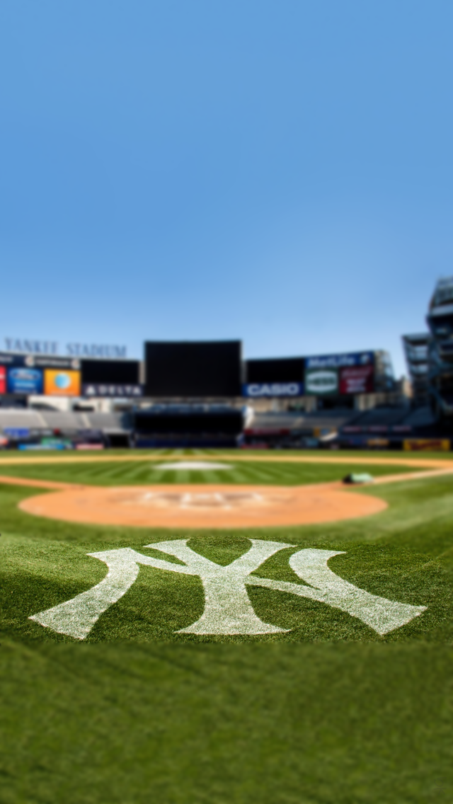 One last requestuseing this yankee stadium wallpaper. Can you do the same as wrigley BUT two changes if possible. First is to leave yankee logo go just fade out the back like wrigley. Also can you center the yankee logo so the whole logo shows?