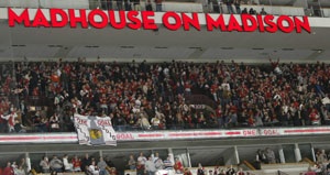 Can you make me something like this with the hawks? I attached madhouse on madison and you have the hawks logo