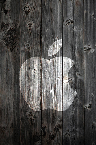 I like to use the dark grained wood planks with a white apple logo in the centre.