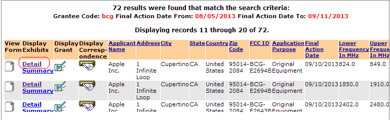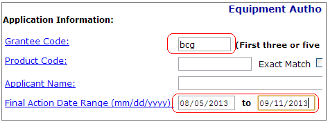 Enter the Grantee Code : BCG (that's Apple), and a search date range: