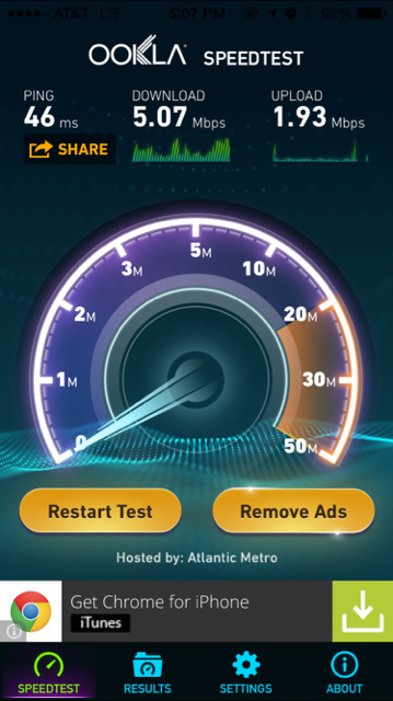 Are you on an unlimited plan? at&t throttles to 0.5/0.5 after you've used 5GB of Lte and that looks exactly like what is happening here.