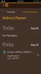 So, without doing anything other than entering your address, the app will recognize "hey a package is coming to this address" and show it? If so, that's a pretty neat trick.just go to UPS' website and sign up for my choice. It's free. Then download the ups app from app store sign in with your login name and password. Click on My Choice and it will show you if you have a shipment in the system for Friday. Mine shows right there for September 19. Verizon customers use FedEx. AT&T and Apple use UPS. View attachment 492156
