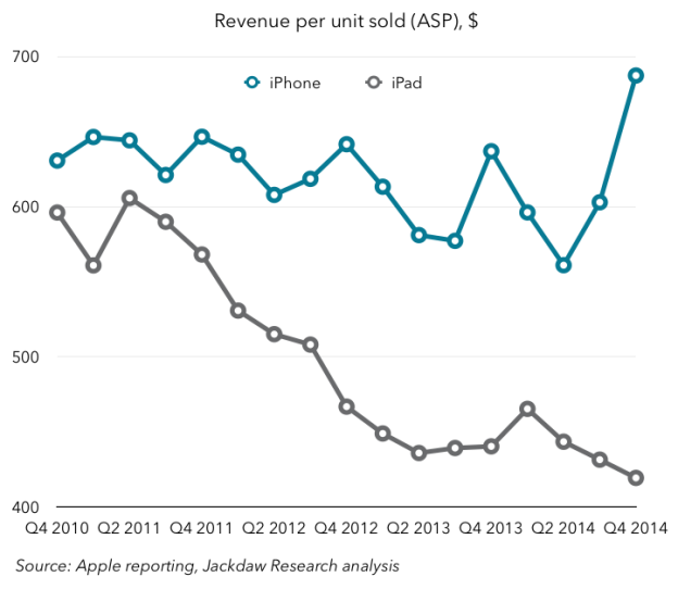 That extra $100 has helped increase ASPs for Apple in the iPhone 6 cycle.