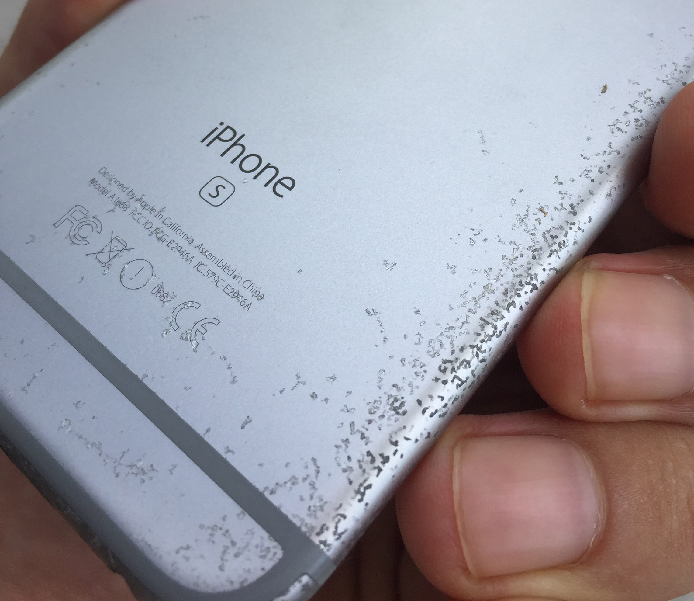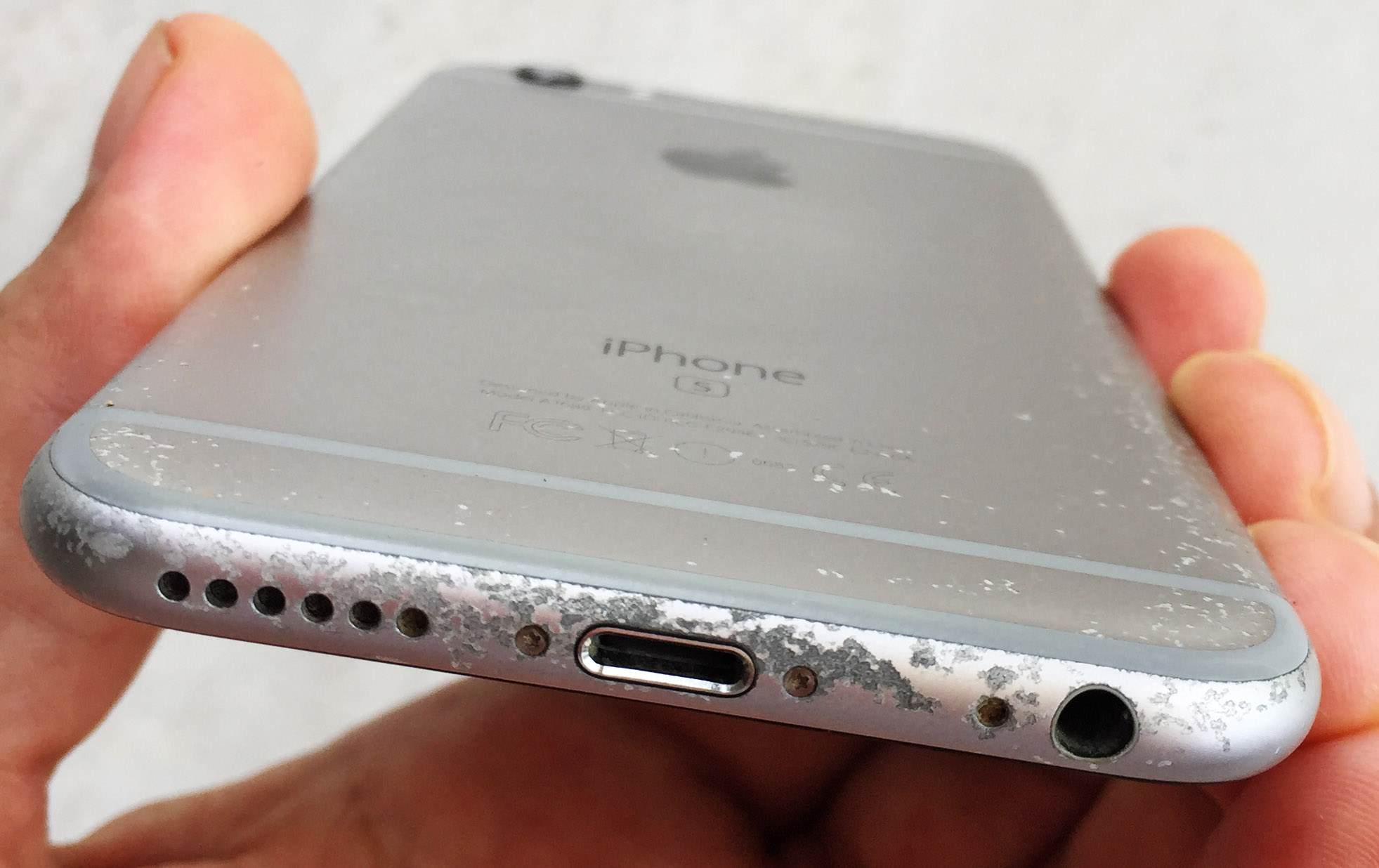 Aluminium on my 6s Plus has been chipping on its own especially at the edges. It's appearing at the bottom of my phone all along the antenna band and now it's appearing at the top. It's also appearing around my pentalobe screw holes, lightning port and headphone jack.