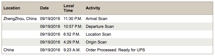 Last UPS update was Sunday in ZhengZhou. It need to make it to the NYC metro area.