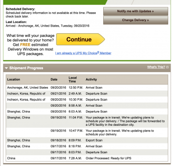 Mine was in Alaska last night and was delivered to CT just after noon EST today.