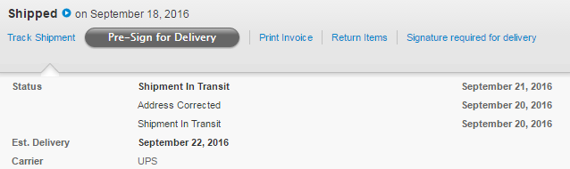 - On the Apple site, if you look at tracking, they state it hit "Shipment in Transit" status on 9/20 (however above states 9/18/16), going off the 9/20 date, it must be delivered by 9/23.
