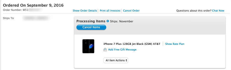 So, I ordered this item using my AT&T Next plan upgrade option. It is now showing November ;-(