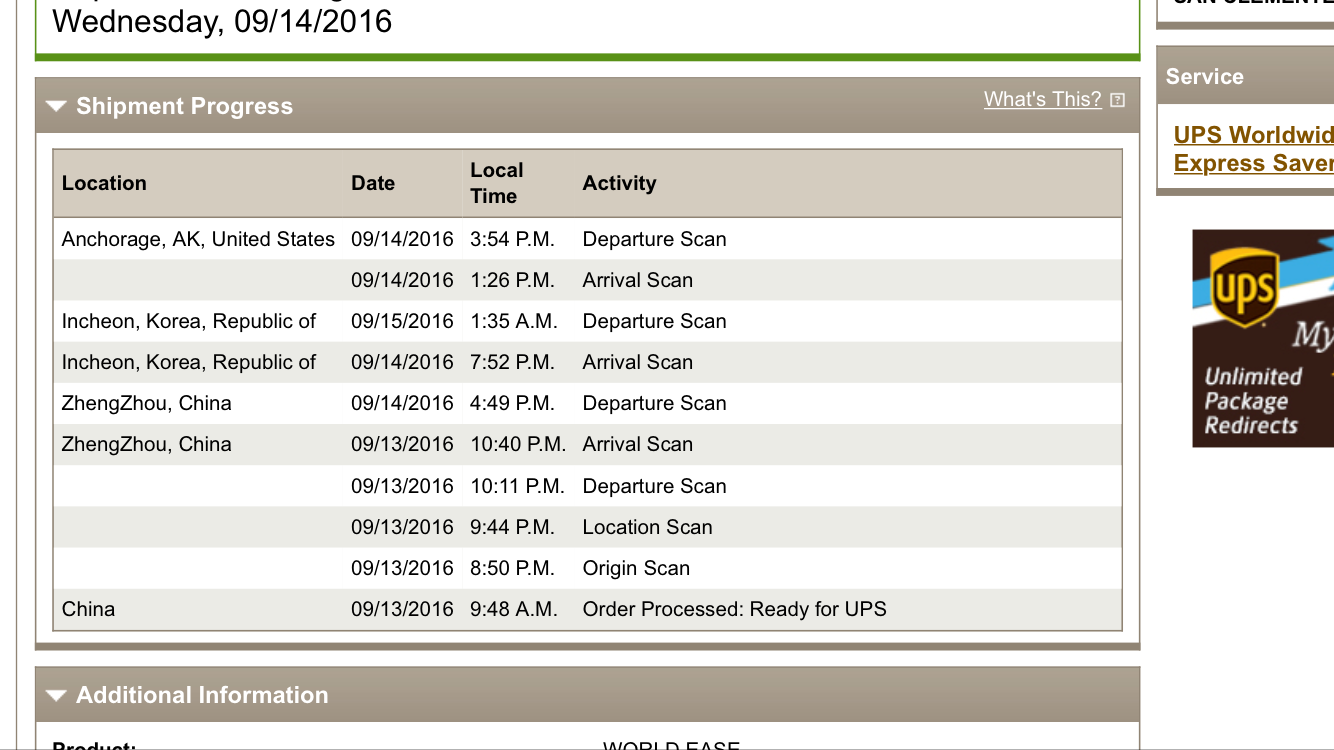Yeah, so apparently the Worldport facility in Louisville has 20,000 employees and can handle 115 packages per second. That's why all our devices are chilling there.