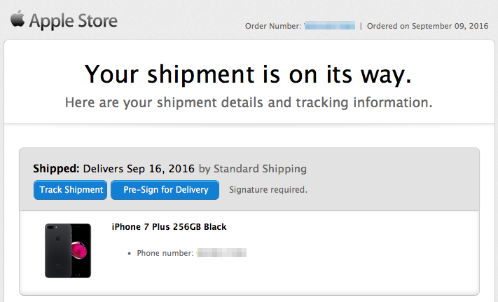 I ordered it Friday around 2:30 central for att 256 MB 7+. I ordered a watch and phone I only have received tracking info for watch from Apple but see 2 packages being delivered Friday.
