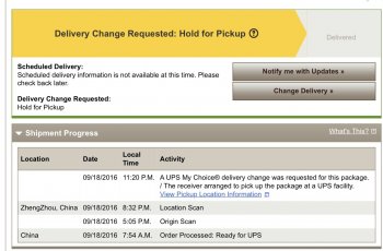 I'm getting the same thing.... looks like ours are on the same pallet in China.....WTF. Shipped since Saturday. Anyone stuck in China like me? UPS my choice still says for tomorrow. I asked for it to be held. Cmon man!