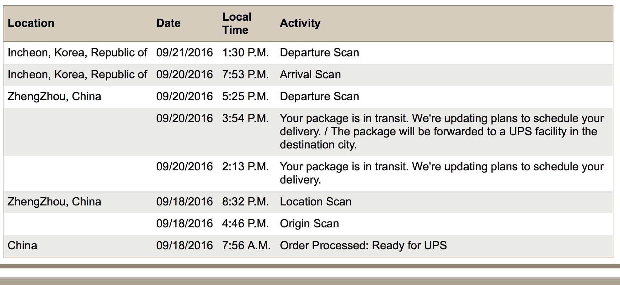 Yes, me too! Your history looks just like mine! I wasn't expecting it until 10pm tomorrow in Korea so this is great news! Hours earlier than I thought it might leave...