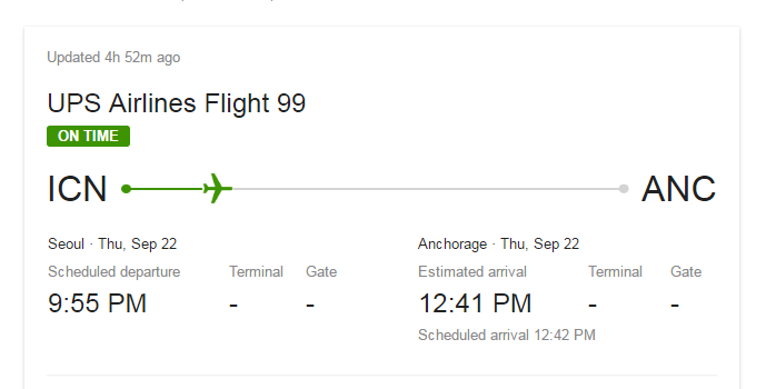 I have a scan in Korea after my phone arrived in Anchorage. UPS told that they make planned movement scans and actual location scans. Basically, we can't tell what's real and what's not.What's going on with the 9/21 8:01pm arrival in Korea? I was supposed to have my phone yesterday.