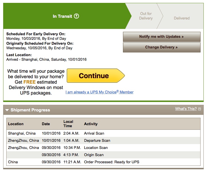Im stuck in same boat... now my buddy who works for UPS says if it didn't leave world port in Kentucky by 5am its stuck there til monday morning and now will be delivered Tuesday instead. 2-3 days has now turned into 8 days for Oct 4th.