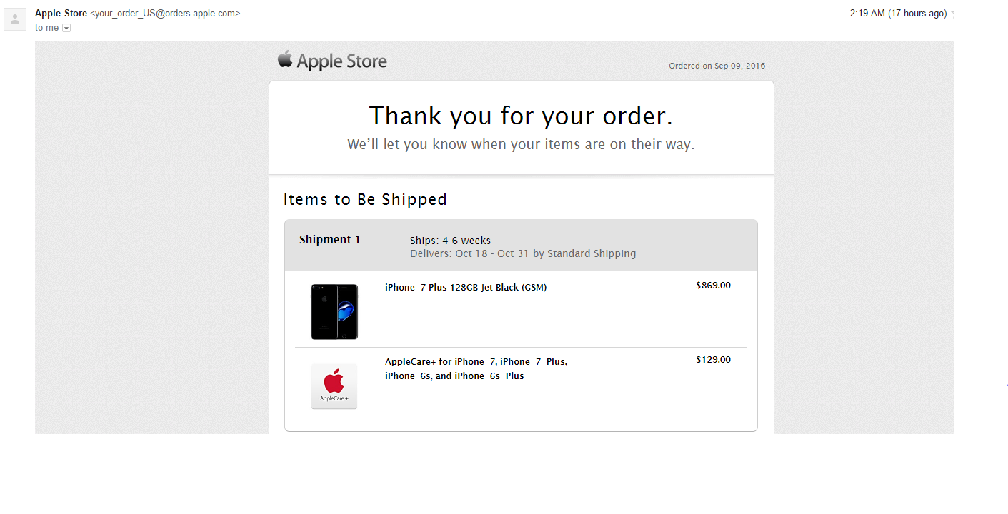 Anyone else have an October 10 to 17 date with an unlocked att iPhone plus 128gb jet black? I feel like I'm only one. Makes no sense since got it at 3:12