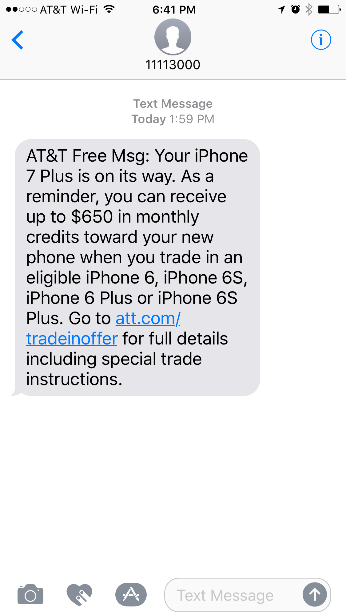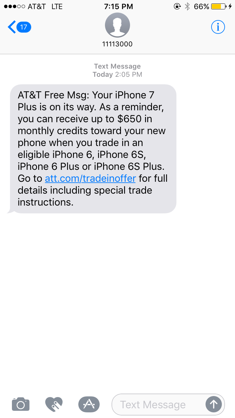 I got this too and was wondering the same thingGot this text today. Not sure if it really means my iPhone 7 Plus is shipping or if it's more of a marketing tactic for their trade-in program View attachment 655813