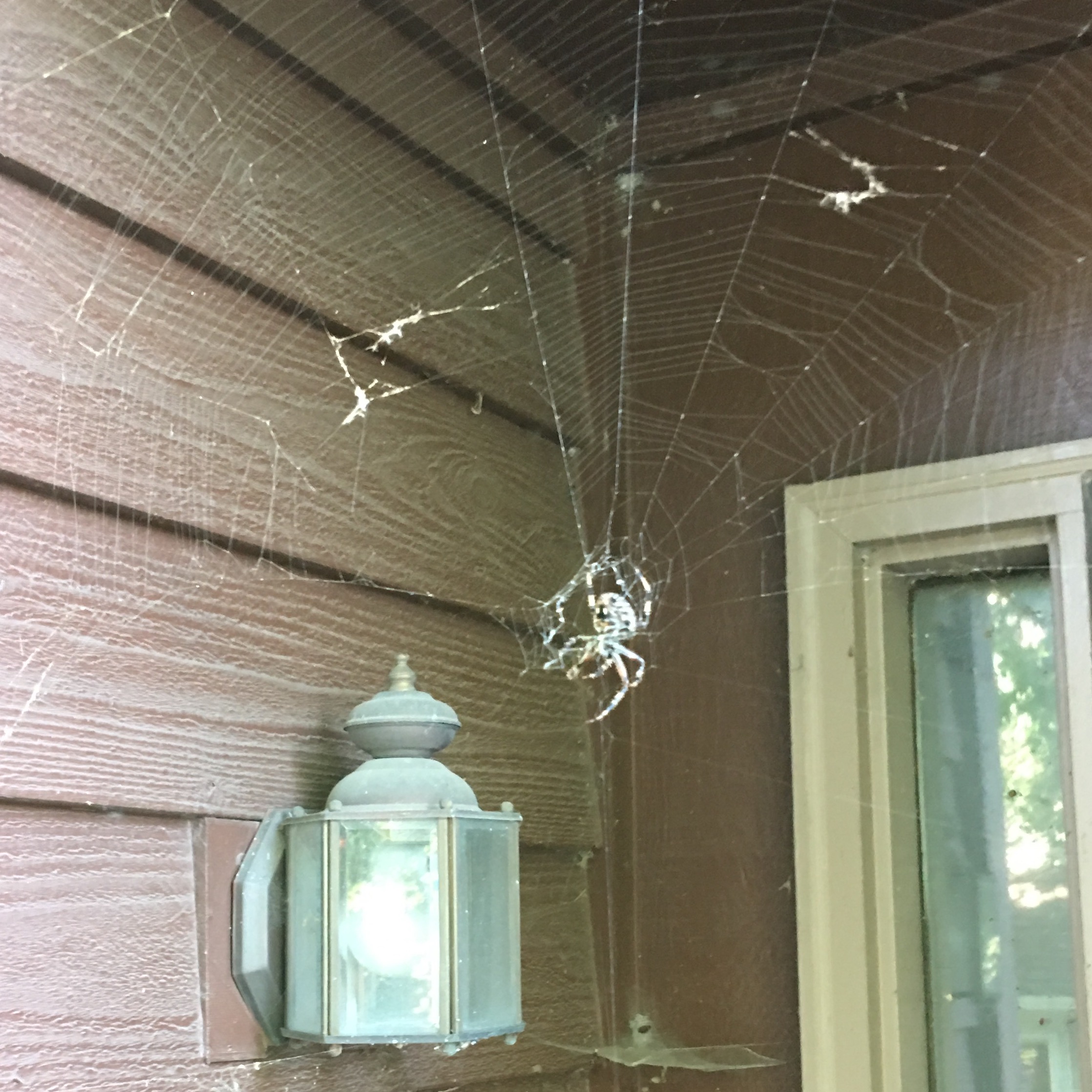 This fellow was planning on ambushing the FedEx man when he delivers my iPhone this morning. He is now in the great web in the sky. He was just about face high. I spotted him while walking my dog Molly. (See my Avatar)