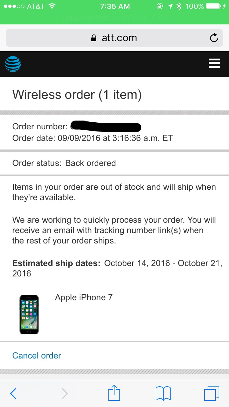 I was about to spaz as I ordered the same phone on 9/16 8:16AM, but I ordered the + not the regular 7 like you.