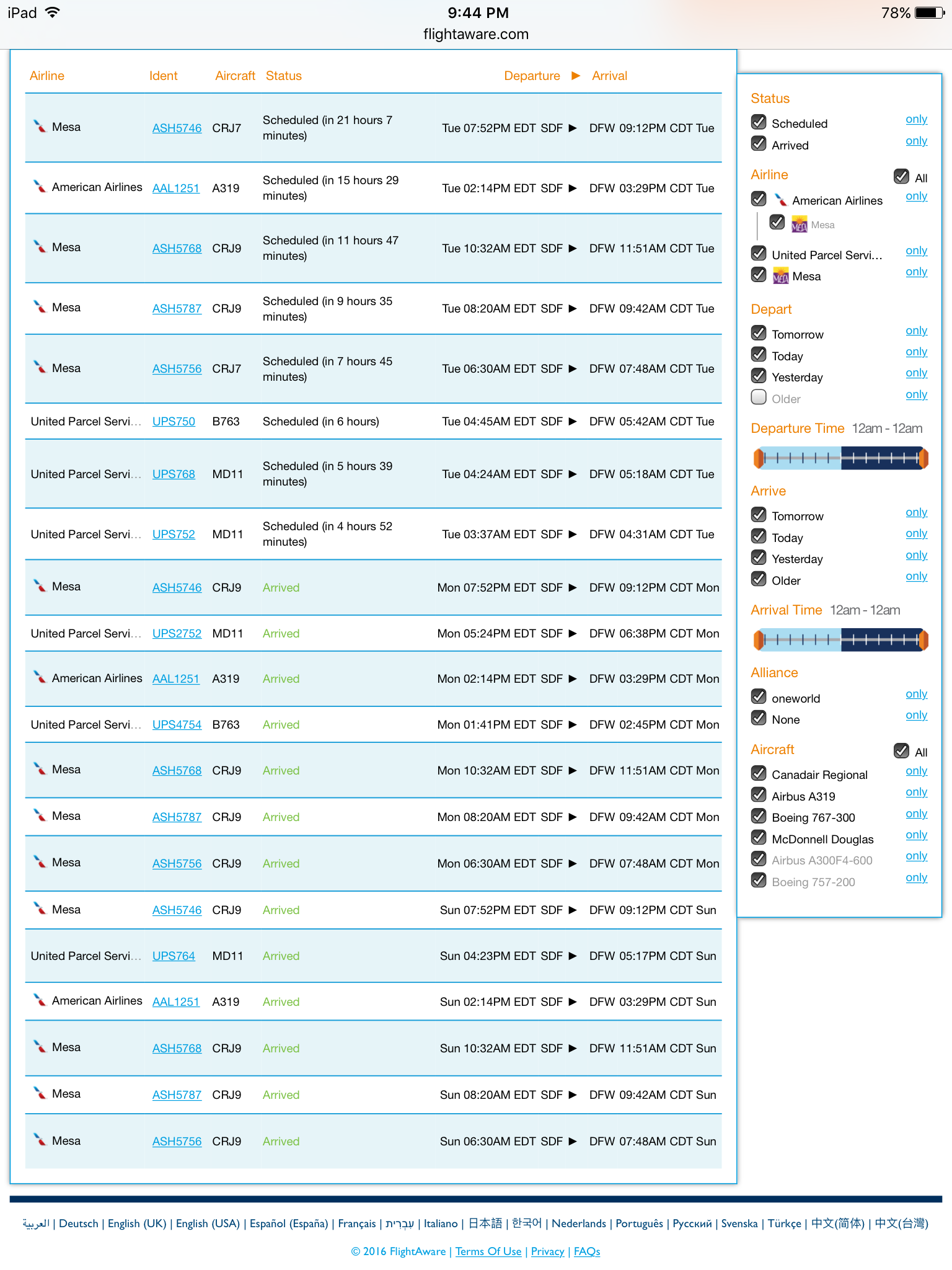 Flight aware.com just searched flights departing Louisville and arriving in Dallas, UPS77 is the airline. Three already arrived this morning.How'd you find that out?