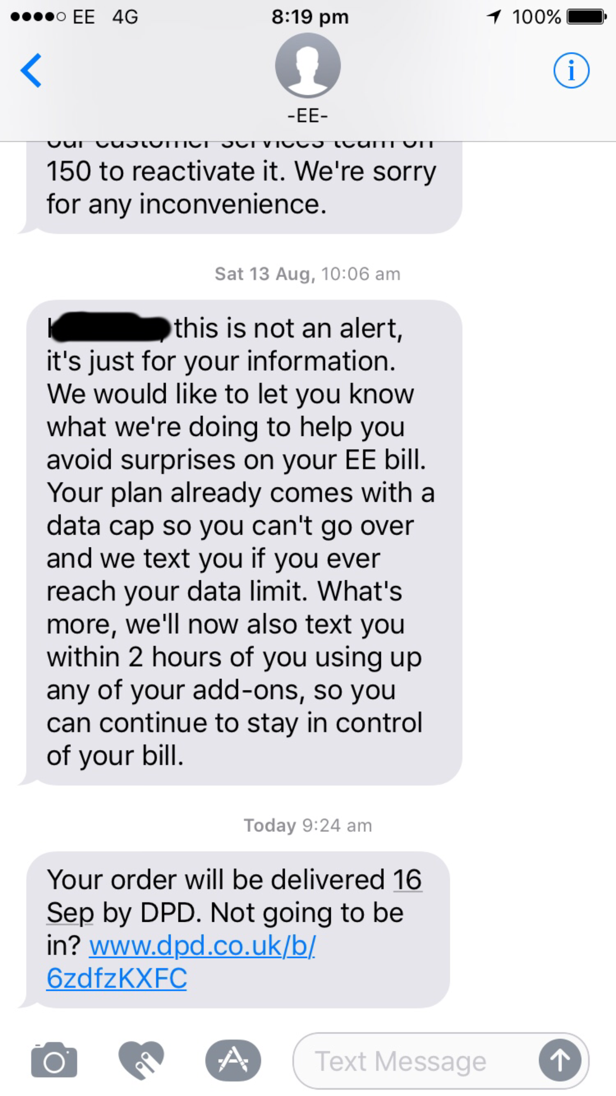 Just got the text, annoying as 2 hours ago and on chat I was told I was getting it tomorrow