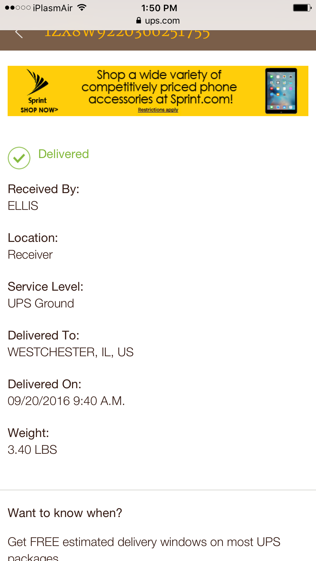 Just got off work. Getting ready to head to the Sprint store. I didn't get tracking info, but I got a text message from the store that they received a box with my name on it.