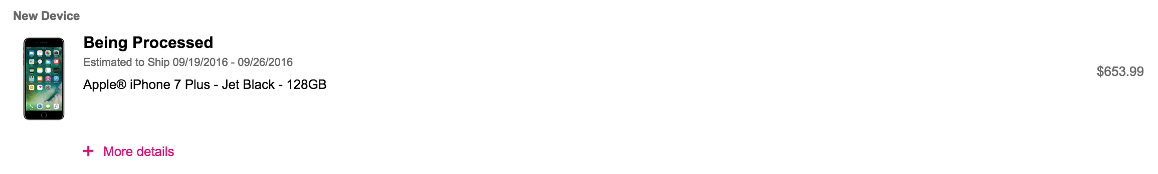 What did you order? Looks like T-Mobile just got in a bunch of rose gold, gold and silver + phones. No blacks yet.