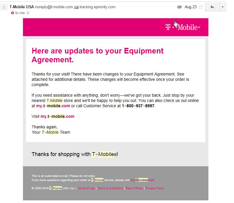 I never received one of those last year or the year before. I'm an electronic hoarder (I keep copies of any contract/order emails), so I have all emails I receive from T-Mobile regarding any orders and I don't have one of those. As a matter of fact, I just went back and checked and don't have one of those from the iPhone 6 launch. My emails go from "sign your EIP" to "your order is confirmed" to "your payment has been processed" to "Your JUMP trade-in has been credited."