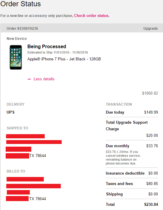 Yeah I had to call it in because it was 1am PT and the tmo website was dead hahLooks like it was ordered over the phone or in person. They charge a $20 fee which can get credited back to your account if you ask.